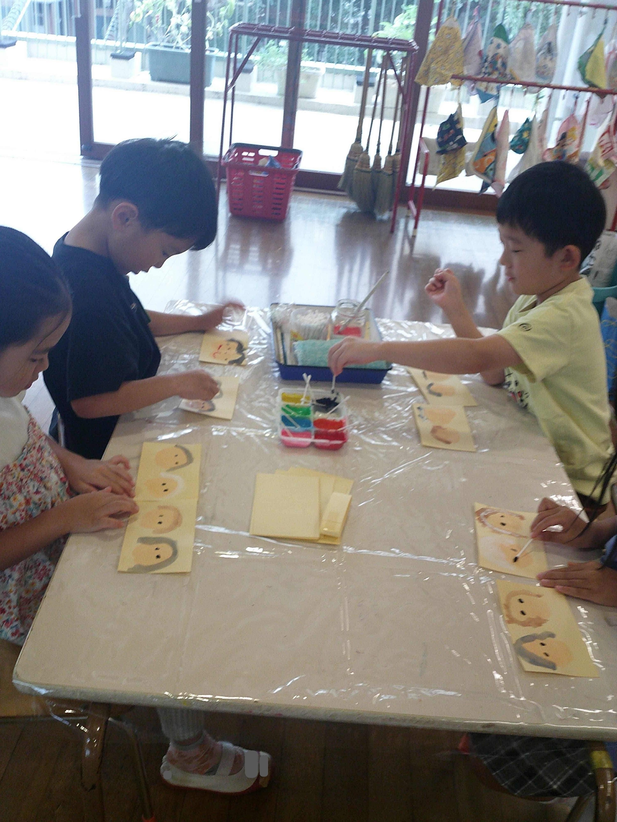 はと・ゆり組はおじいさま、おばあさまのお顔をそれぞれ描きました。