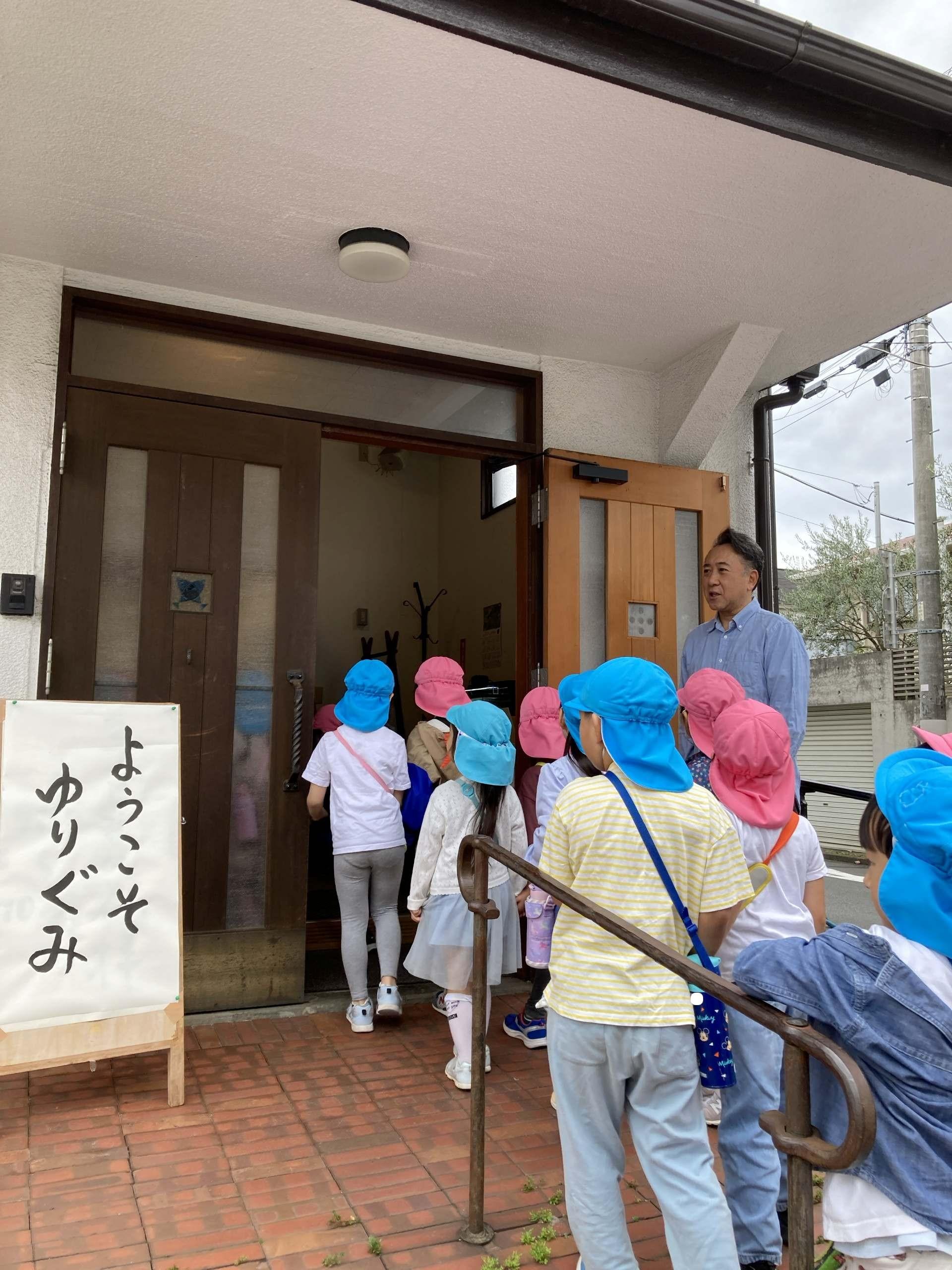 今日、ゆり組は朝いちばんに東美教会へお散歩に出かけました。
