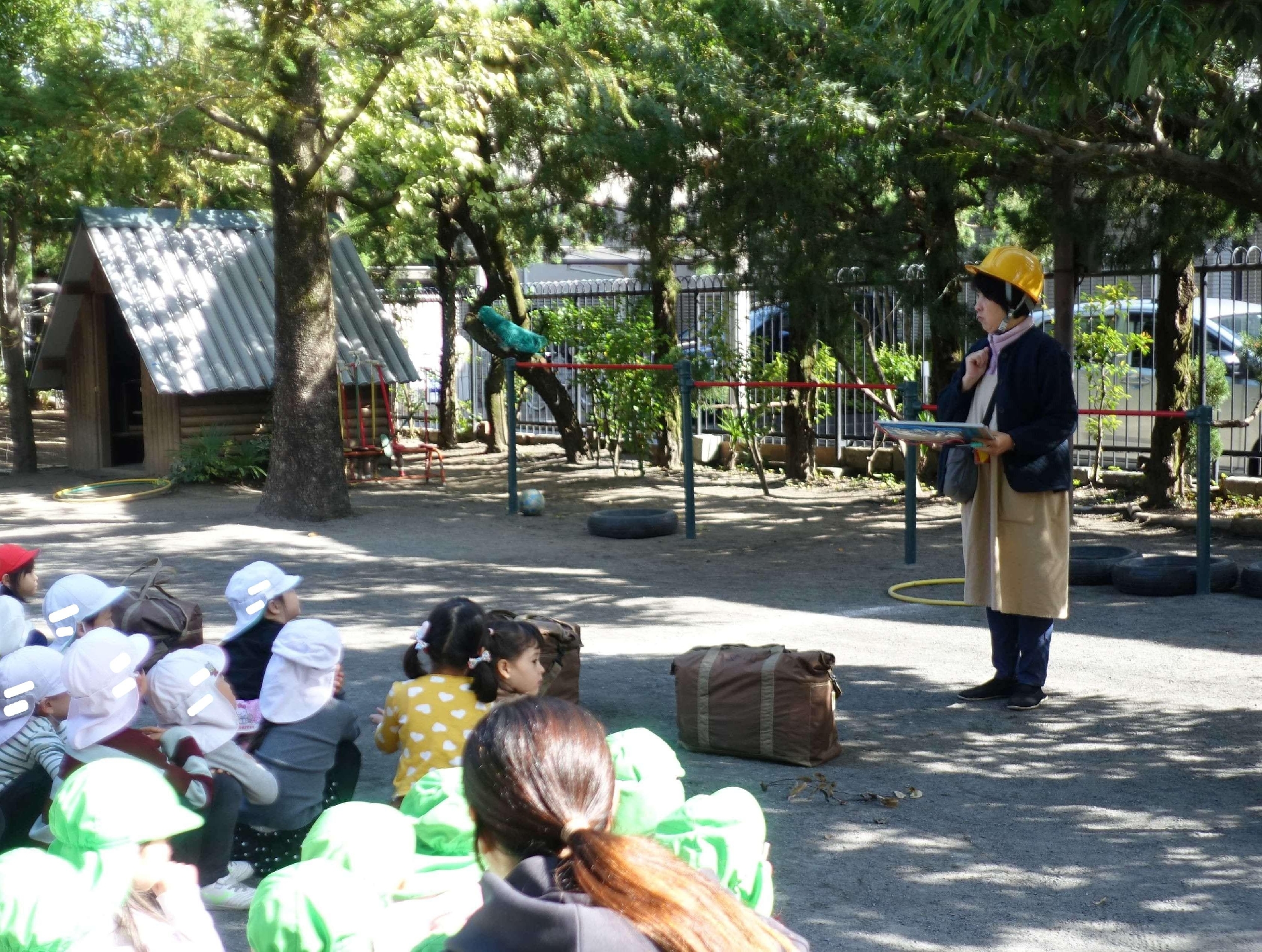 朝からドキドキした子もいたようですが、初めてのつぼみ組も含め、日頃の訓練が活かされていて、上手に避難することができました。