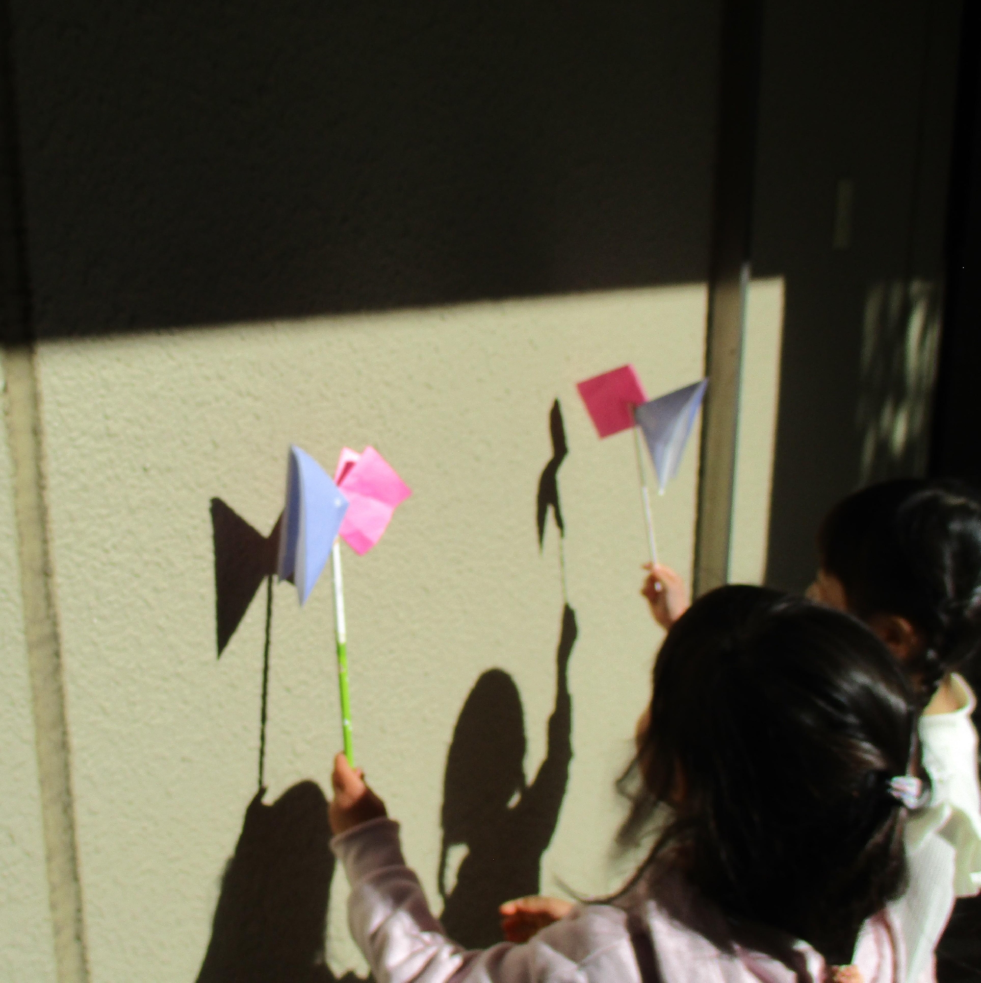 とてもいいお天気だったので、あちこちにできた自然のスクリーンで影あそびも楽しみました。